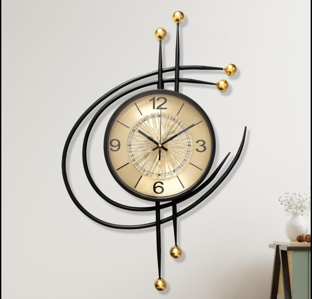 خطوط ومنحنيات معدنية حوالينها + كرات ذهبية ديكور