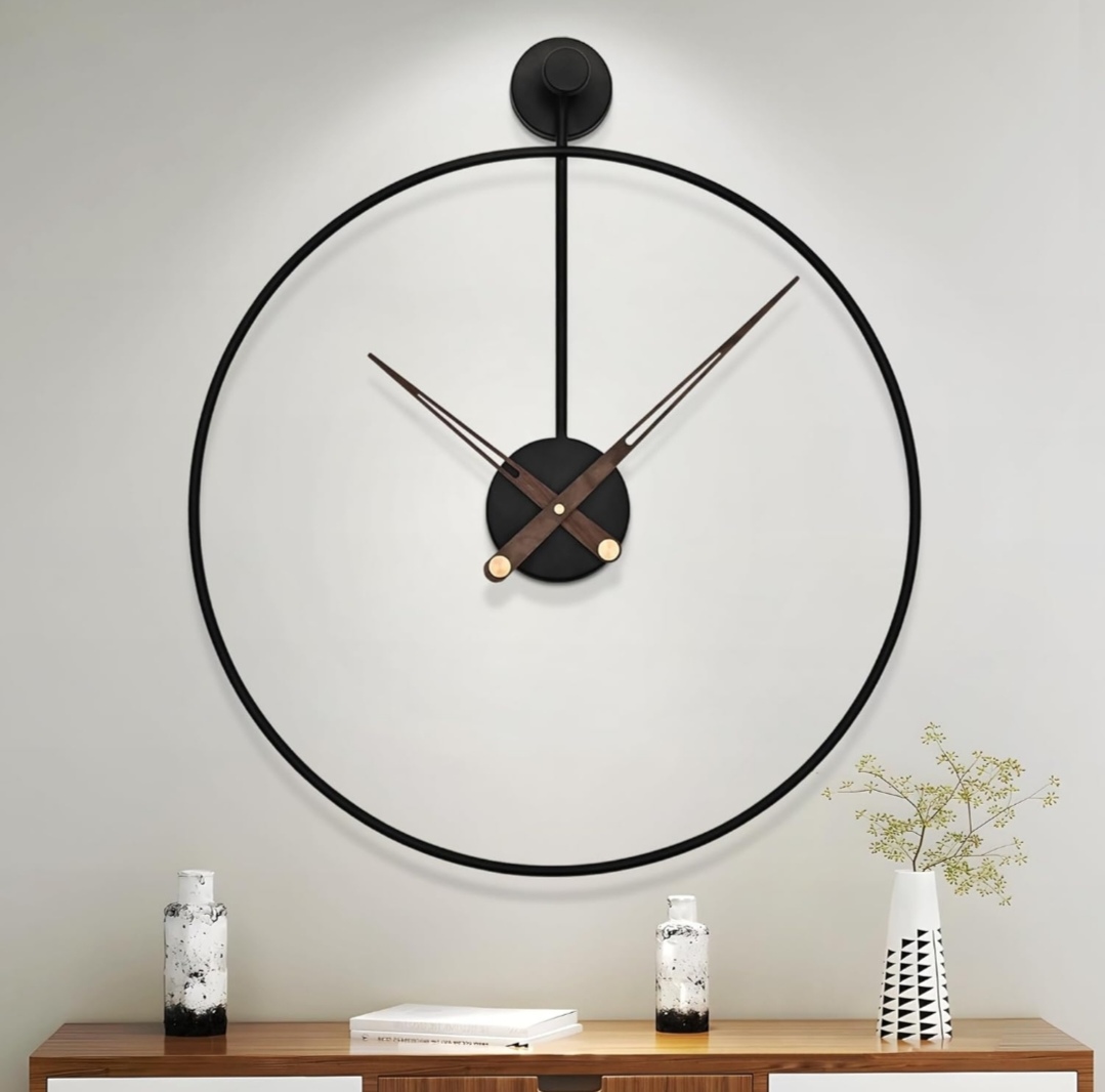 العقارب: مصنوعة من الخشب الطبيعي (مثل خشب الجوز أو البامبو) مع لمسات معدنية في المنتصف.